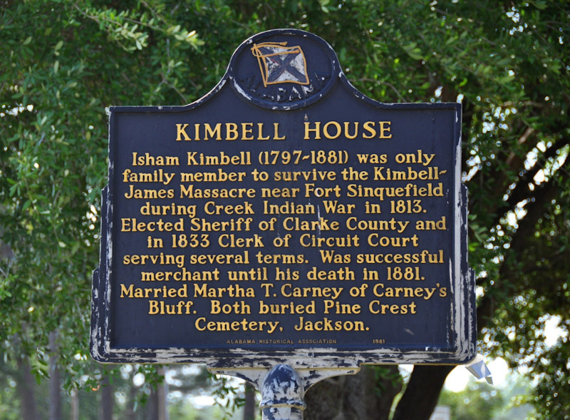The Kimbell House in Jackson, Alabama, is a historic home built circa 1848 by Isham Kimbell. It is a significant local landmark, representing one of the few remaining “pioneer-type” dwellings in the area.